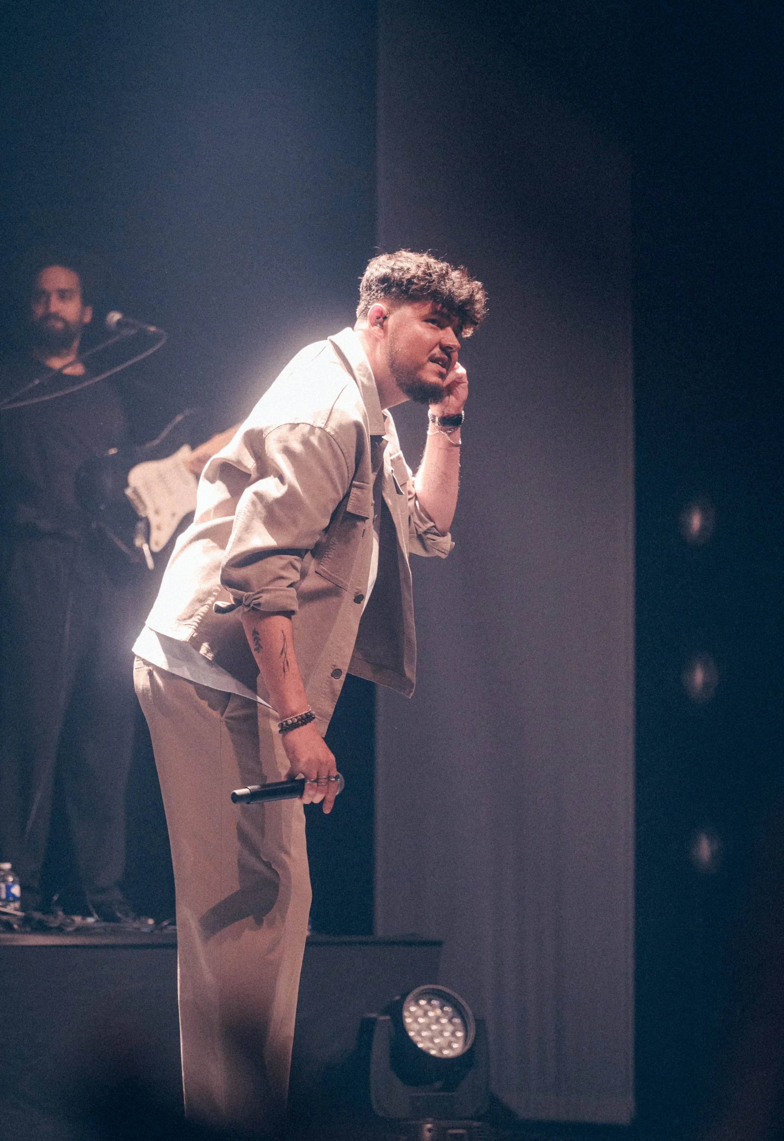 Le concert a commencé avec Cobalt, jeune artiste normand empli de sensibilité et de douceur. Repéré dans La France à un incroyable Talent où il est arrivé en demi-finale. Il a joué plusieurs morceaux, dont le single Trop tôt qui a été propulsé sur Tiktok. Sa voix et sa guitare ont immédiatement capté l’attention du public et ont préparé le terrain pour Joseph Kamel.